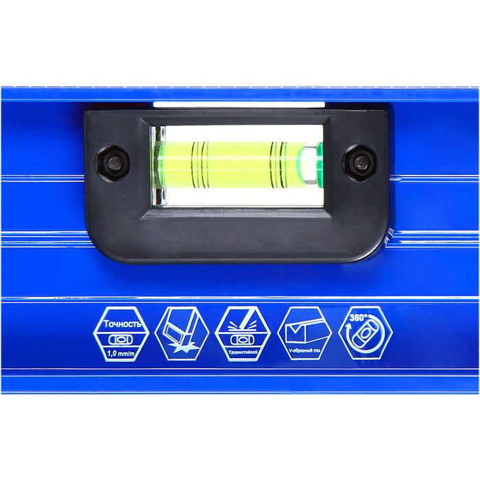Уровень строительный КОБАЛЬТ 1000 мм, профиль 25 x 60 мм, 3 глазка, 2 ручки, V-образный паз, точность 1 мм/м, литой (243-165) - цена, фото, технические характеристики