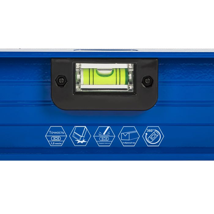 Уровень строительный КОБАЛЬТ 600 мм, профиль 25 x 60 мм, 3 глазка, 2 ручки, V-образный паз, точность 1 мм/м, литой (243-141) - цена, фото, технические характеристики