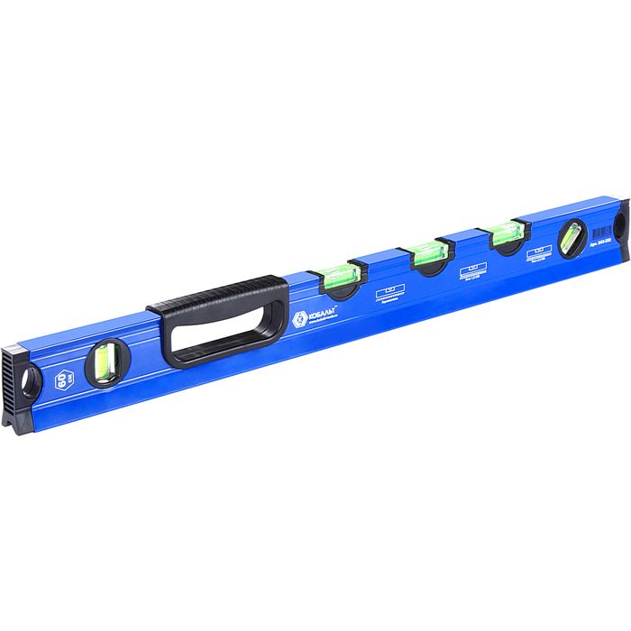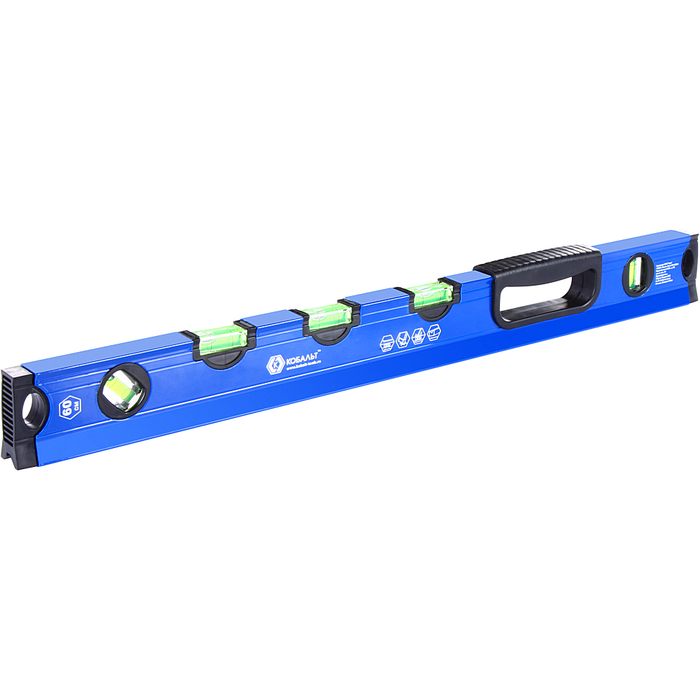 Уровень сантехнический КОБАЛЬТ 600 мм, профиль 28 x 60 мм, 5 глазков, 1 ручка, V-паз, точность 1 мм/м, для водных работ (243-332) - цена, фото, технические характеристики