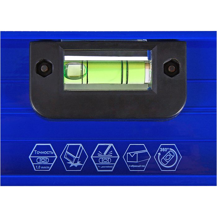 Уровень строительный КОБАЛЬТ 800 мм, профиль 25 x 60 мм, 3 глазка, 2 ручки, V-образный паз, точность 1 мм/м, литой (243-158) - цена, фото, технические характеристики