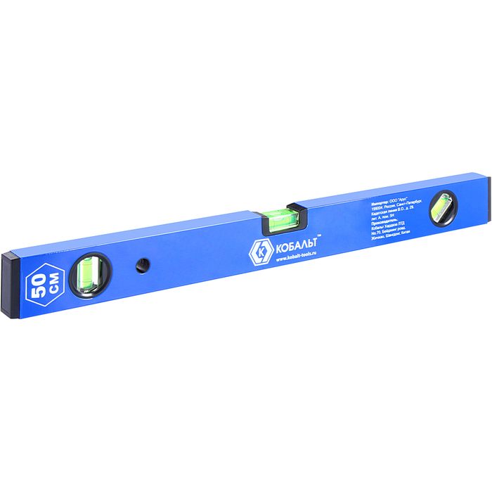 Уровень строительный КОБАЛЬТ Комфорт, 500 мм, профиль 20 x 49 мм, 3 глазка, точность 1 мм/м (242-977) - цена, фото, технические характеристики
