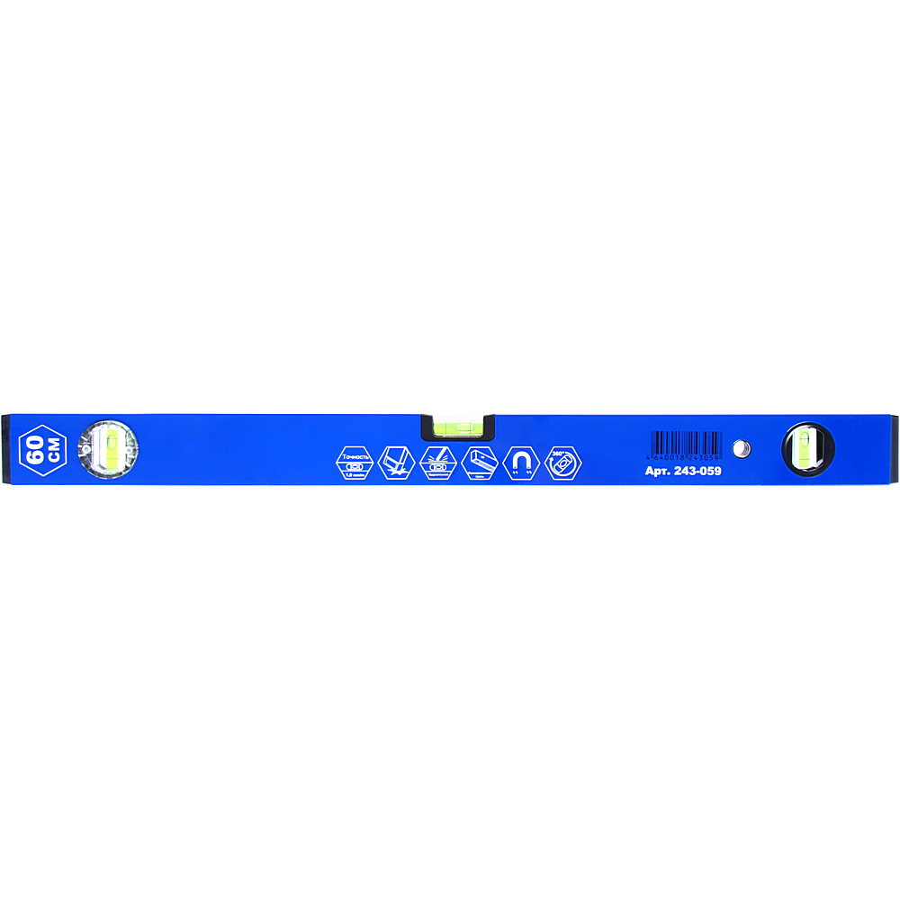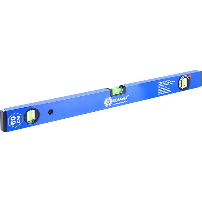 Уровень строительный КОБАЛЬТ Комфорт, МАГНИТНЫЙ 600 мм, профиль 20 x 49 мм, 3 глазка из них 1 поворотный, точность 1 мм/м (243-059) - цена, фото, технические характеристики