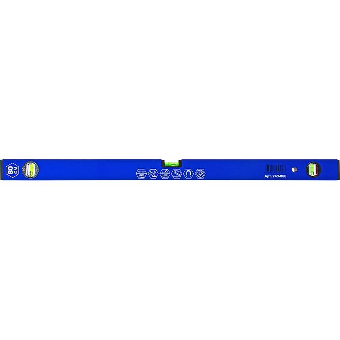 Уровень строительный КОБАЛЬТ Комфорт, МАГНИТНЫЙ 800 мм, профиль 20 x 49 мм, 3 глазка из них 1 поворотный, точность 1 мм/м (243-066) - цена, фото, технические характеристики