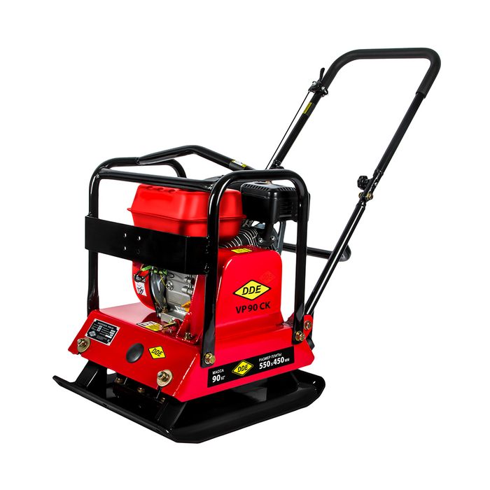 Виброплита DDE VP 90 CK (6,5 л.с., плита 550×450 мм, до 500 кв. м/час, 90 кг, гл. упл. 30 см, колеса) - цена, фото, технические характеристики