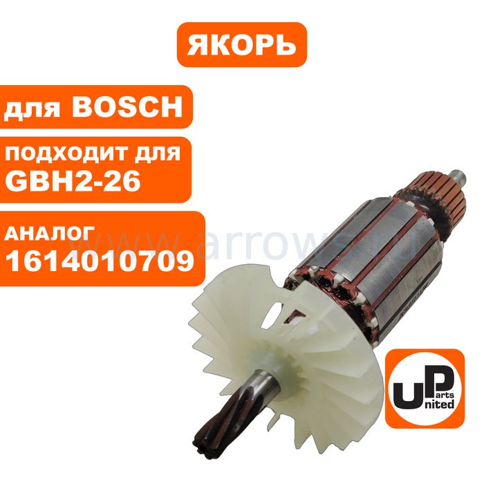 Якорь UNITED PARTS для BOSCH GBH2400 / GBH2-26E/RE/DE/DRE/DFR/DBR 7-зубьев (аналог 1614010709) - цена, фото, технические характеристики