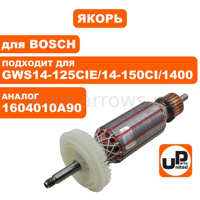 Якорь UNITED PARTS для BOSCH GWS 14-125CIE/CI/CIT/S/ GWS 14-150 CI/ BAG 125-1 E/ GWS 1400/BAG 125-1 E/ BTI-WKS 125 VRE/ EWS 14-150-S (аналог - цена, фото, технические характеристики
