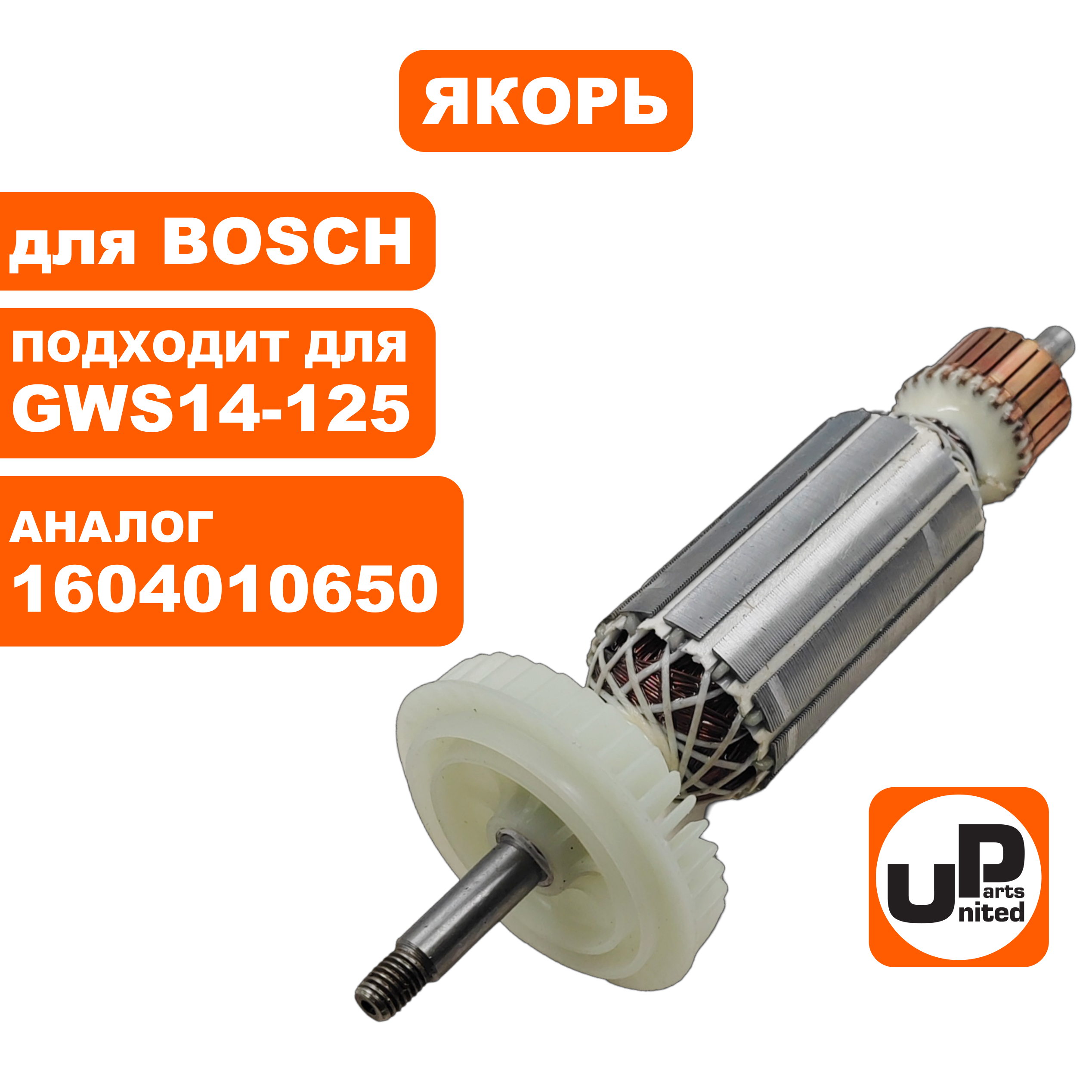 Якорь UNITED PARTS для BOSCH GWS14-125С/GWS14-125CE/PWS13-125CE (аналог 1604010650) - цена, фото, технические характеристики