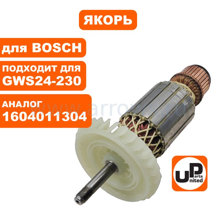 Якорь UNITED PARTS для BOSCH GWS24-180JBX/GWS24-180JVX/GWS24-230JBX/ GWS24-230GVX (аналог 1604011257) - цена, фото, технические характеристики