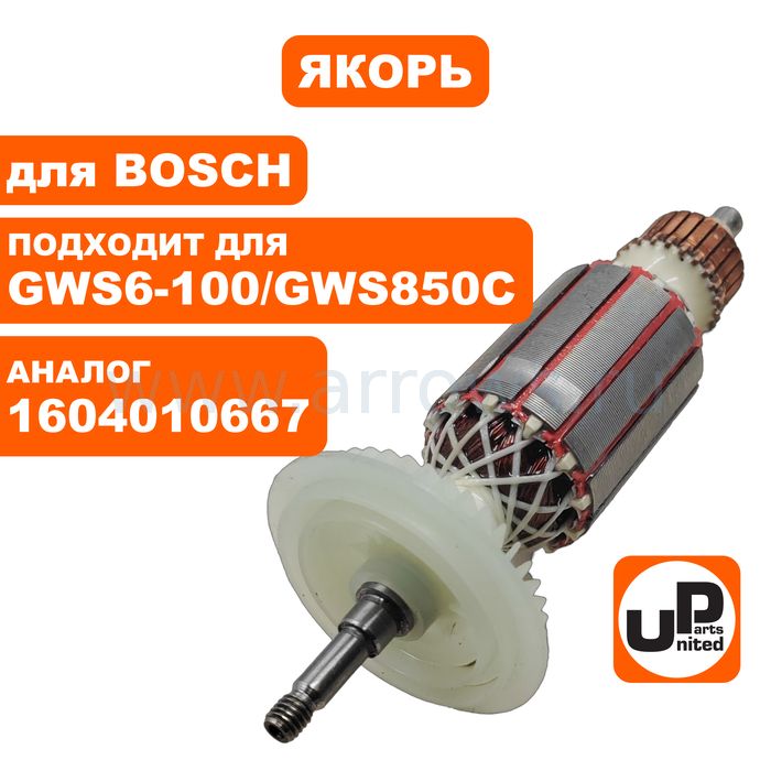 Якорь UNITED PARTS для BOSCH GWS850С/GWS8-100С/GWS8-125CE (аналог 1604010667) - цена, фото, технические характеристики
