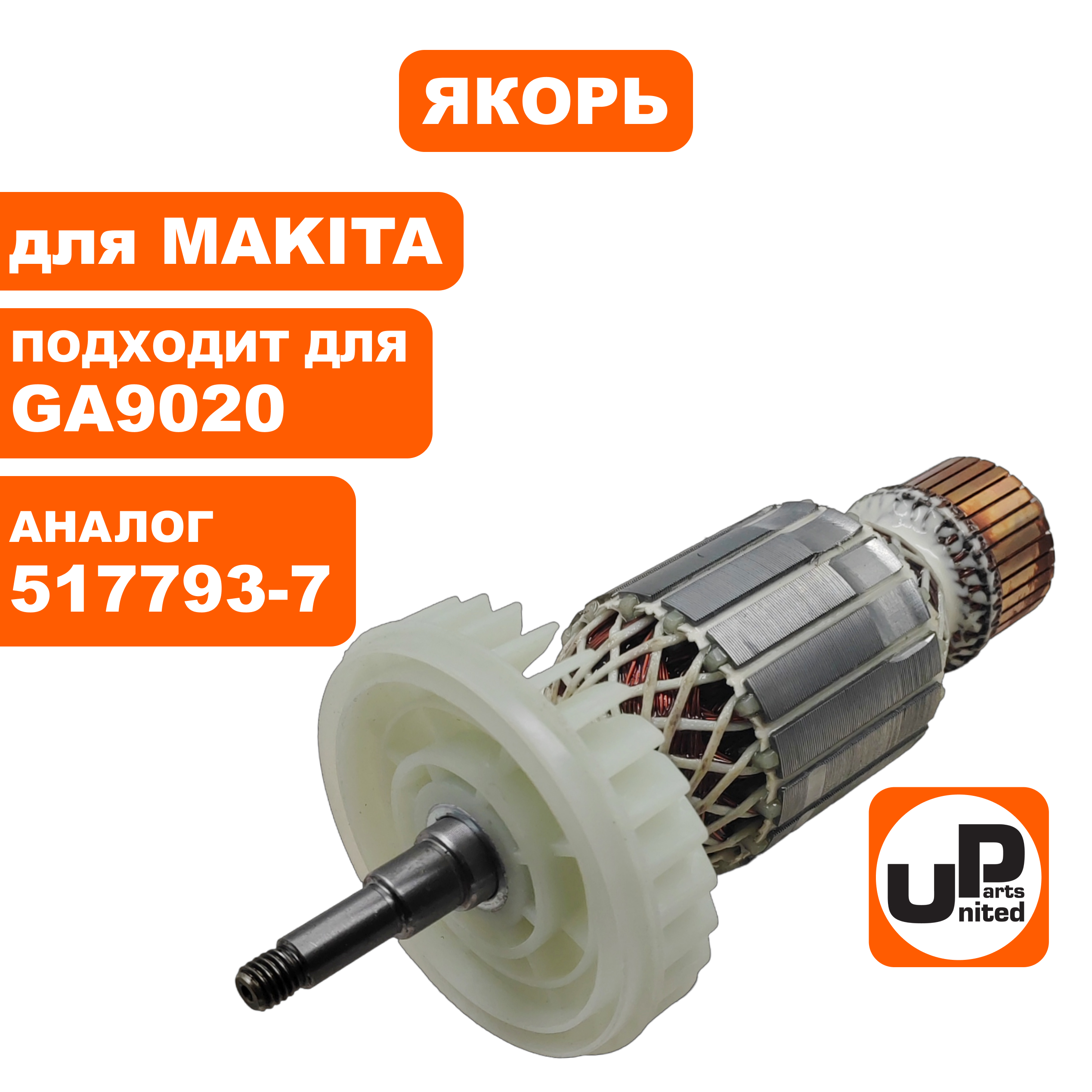 Якорь UNITED PARTS для MAKITA GA9020/GA9020S/GA7020/GA7020S (аналог 517793-7) - цена, фото, технические характеристики