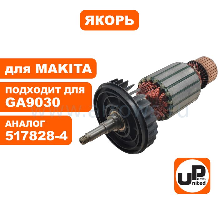 Якорь UNITED PARTS для MAKITA GA9030 (аналог 517828-4) - цена, фото, технические характеристики