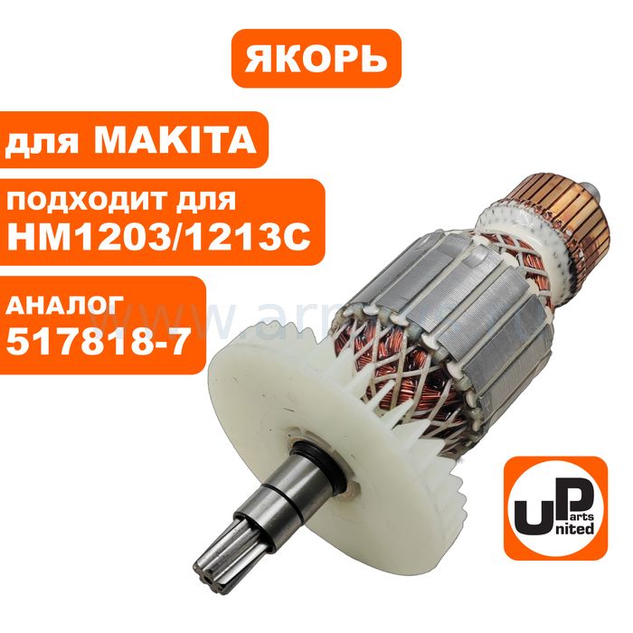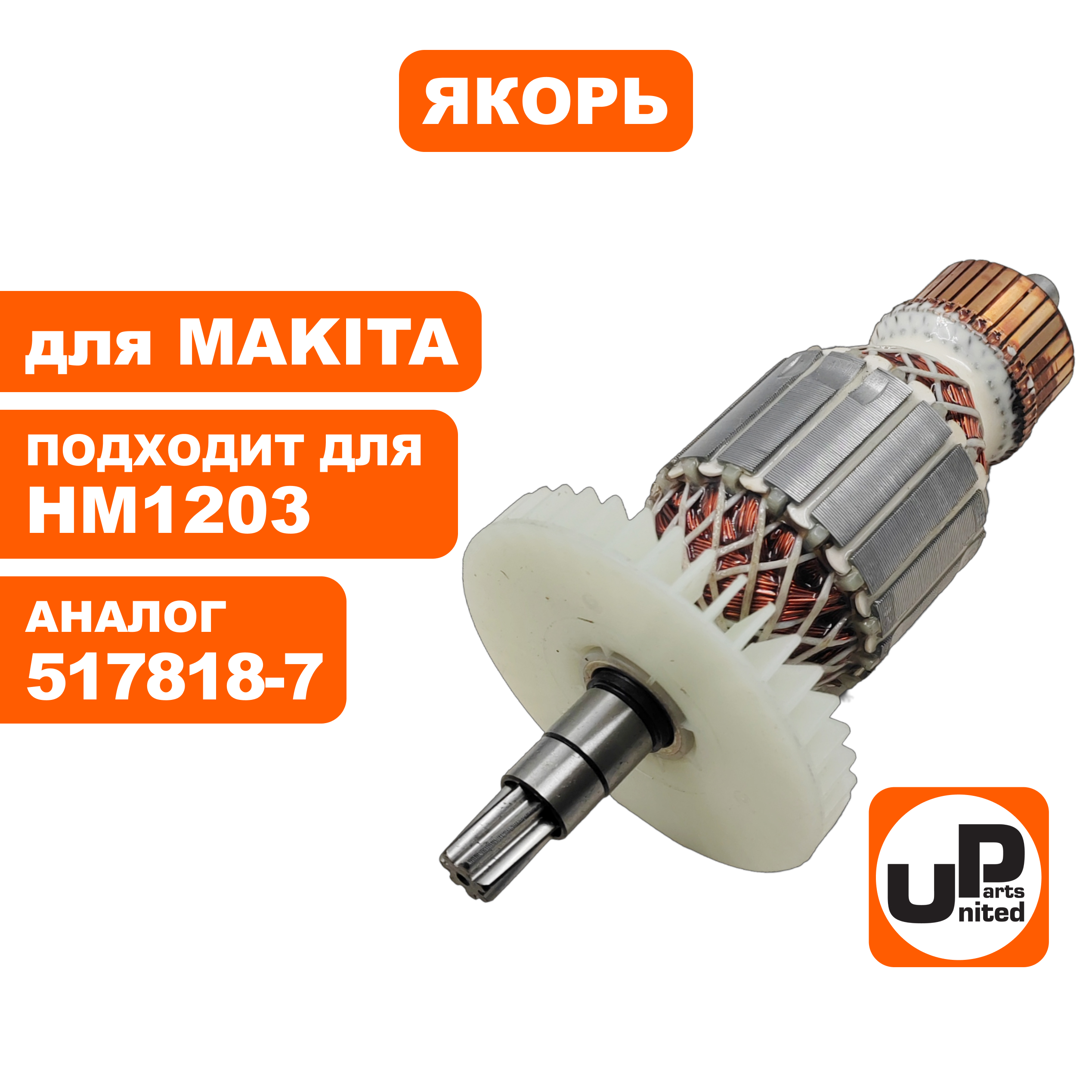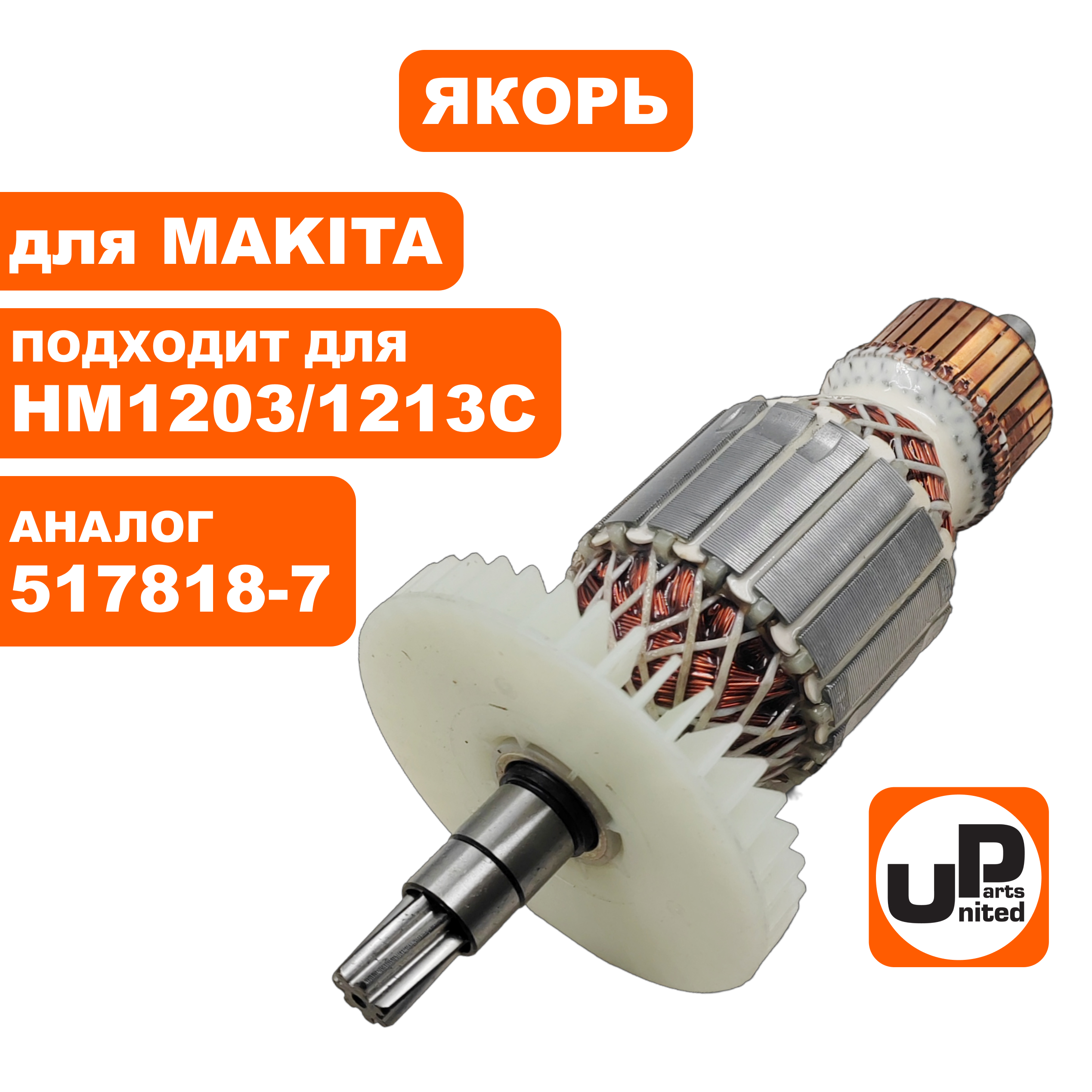 Якорь UNITED PARTS для MAKITA HM1203/1213C (аналог 517818-7) - цена, фото, технические характеристики