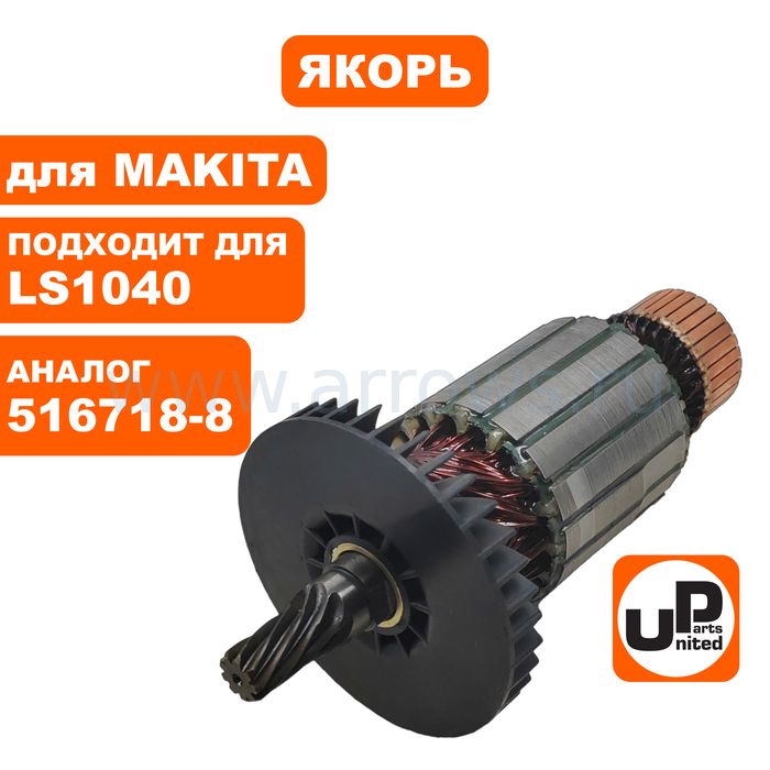 Якорь UNITED PARTS для MAKITA LS1040/LS1040F/LH1040/LH1040F (аналог 516718-8) - цена, фото, технические характеристики
