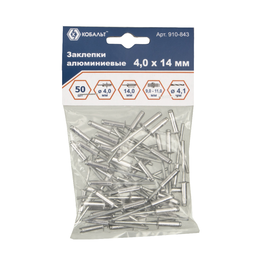 Заклепки вытяжные КОБАЛЬТ алюминиевые, 4,0 х 14 мм (50 шт.) пакет (910-843)