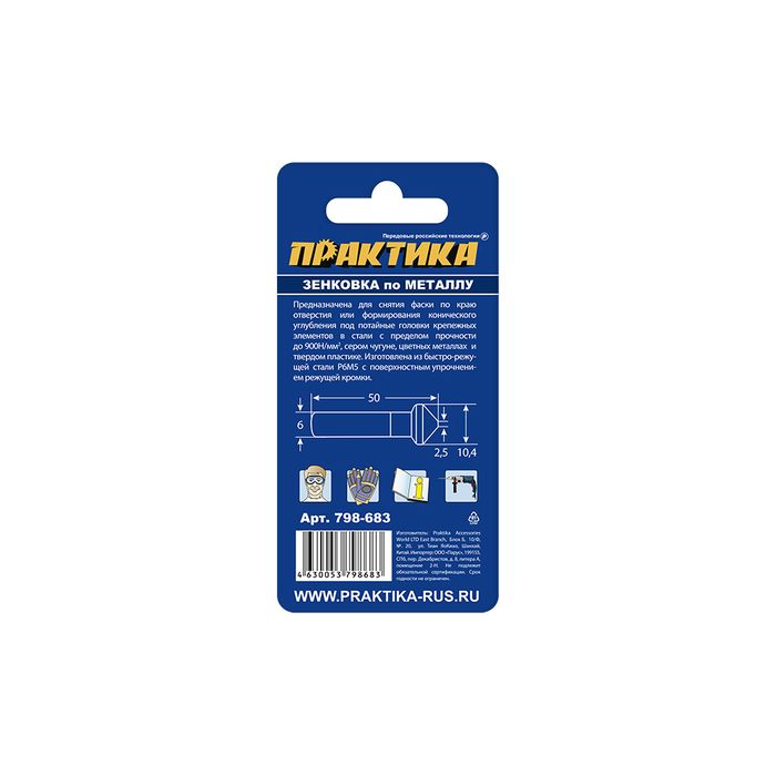 Зенковка по металлу ПРАКТИКА 10,4 х 50 мм, 90 град., под резьбу М5 - цена, фото, технические характеристики