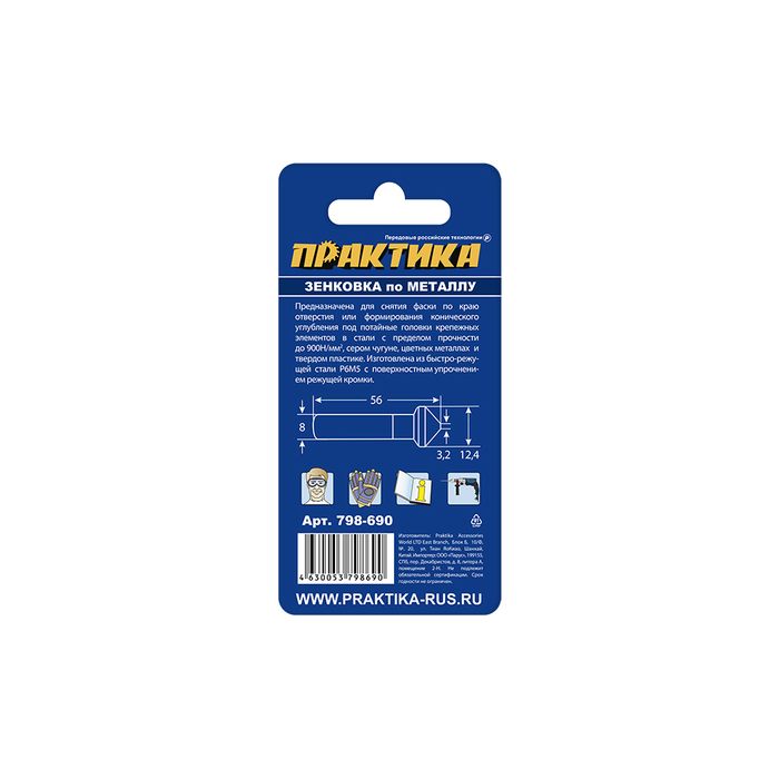 Зенковка по металлу ПРАКТИКА 12,4 х 56 мм, 90 град., под резьбу М6 - цена, фото, технические характеристики