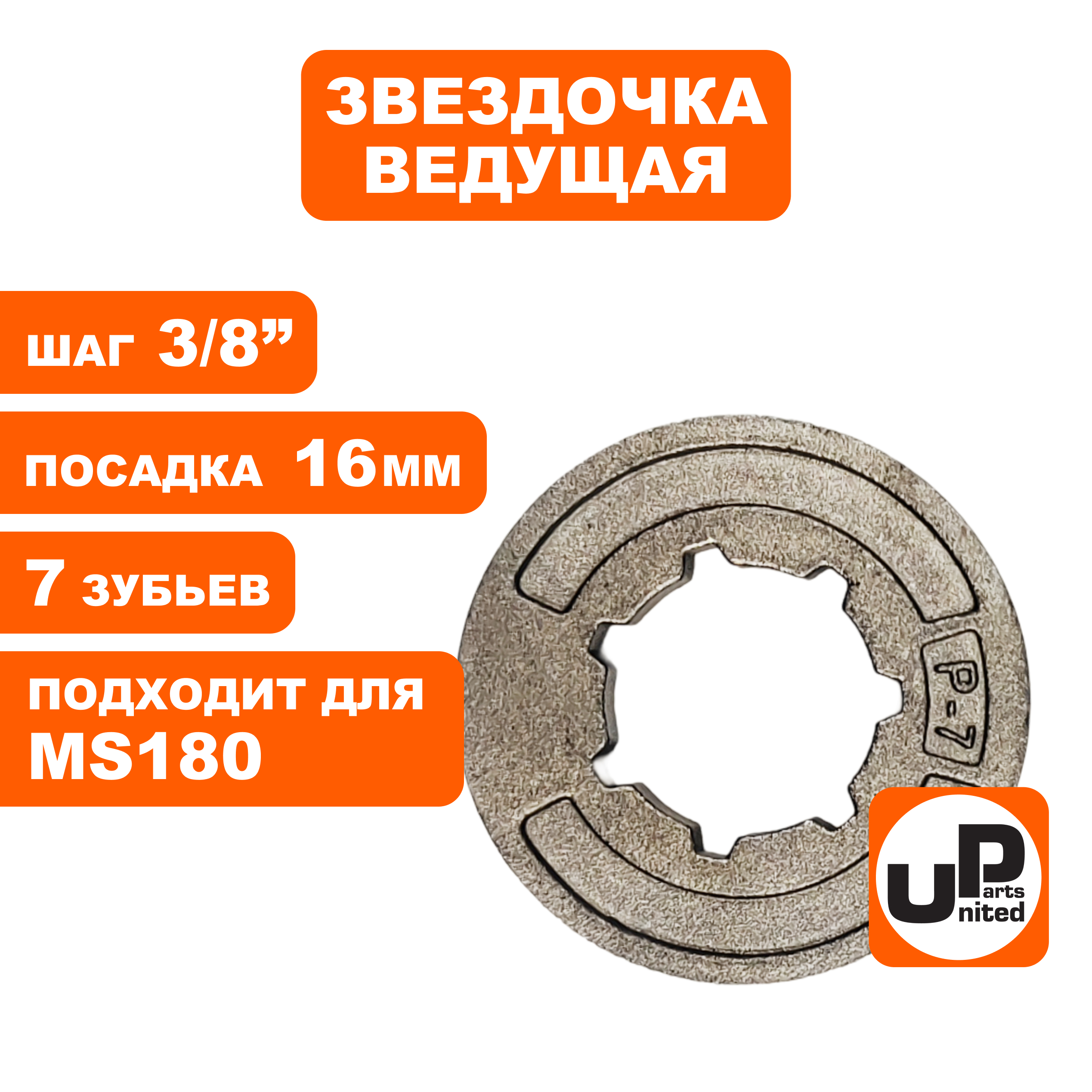 Звездочка ведущая (венец) UNITED PARTS 3/8"-7-7 mini (P-7) для STIHL MS180 - цена, фото, технические характеристики