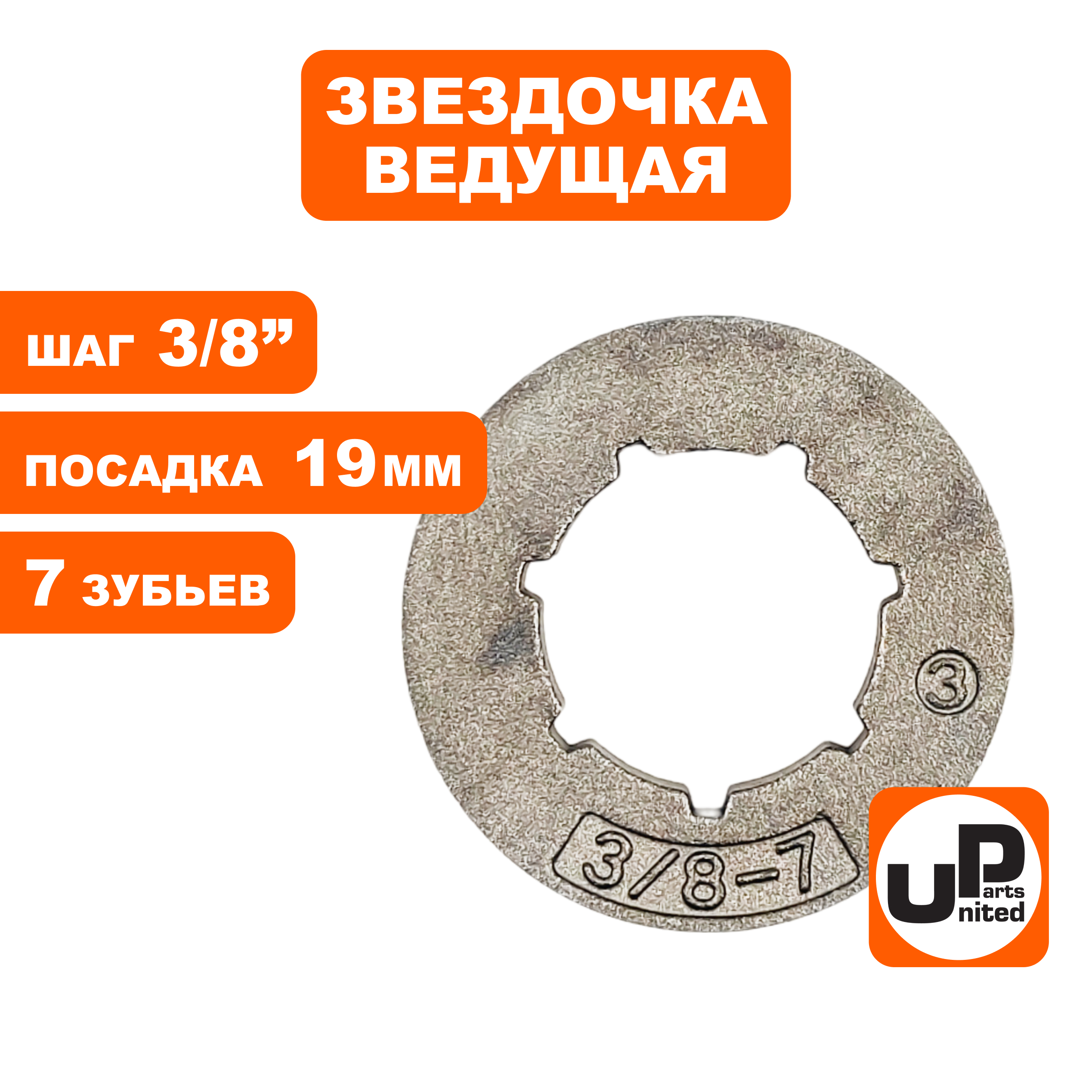 Звездочка ведущая (венец) UNITED PARTS 3/8"-7-7 small (аналог 18720) - цена, фото, технические характеристики